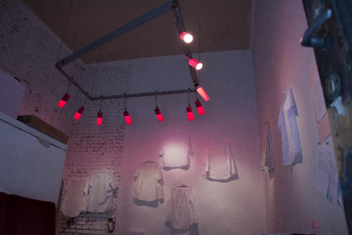 Az I. v. h. befejezésének évfordulójára született meg projektem a Feri Galériában. Egy háborús emlékmű férfi névsorát ingekbe keményítettem. A vállfára akasztott ingek sora testesítette meg a kiállítás anyagát. Az textíliákba keményített névsort a közönséggel együtt oldottuk fel, mostuk ki a kiállítás finisszázsán.