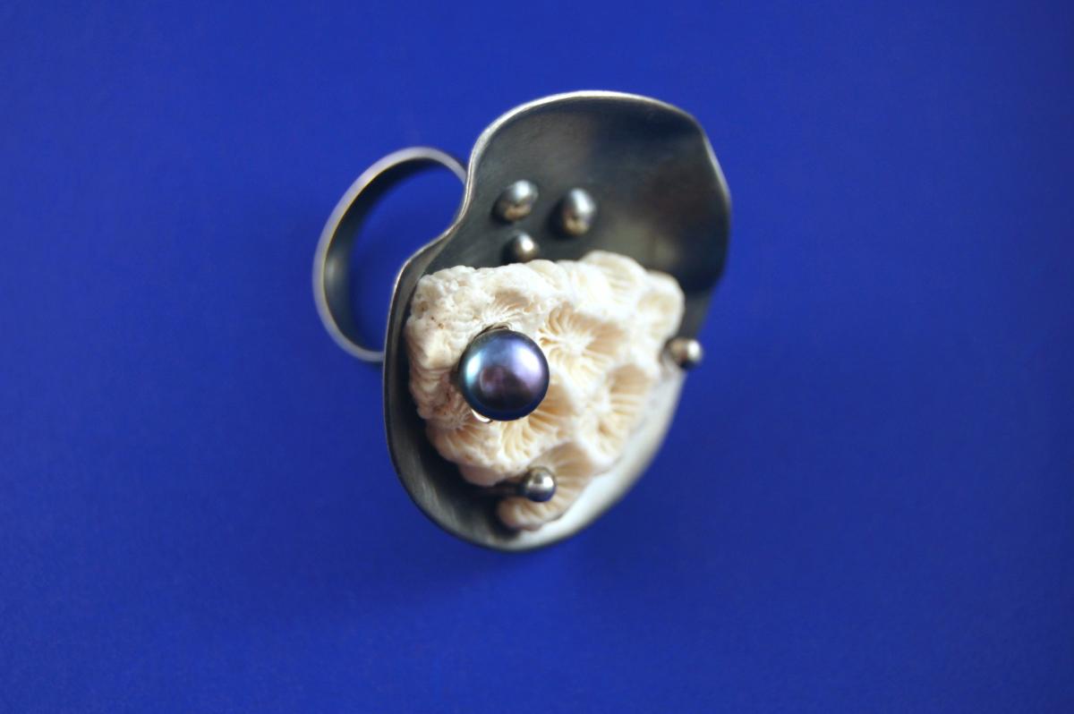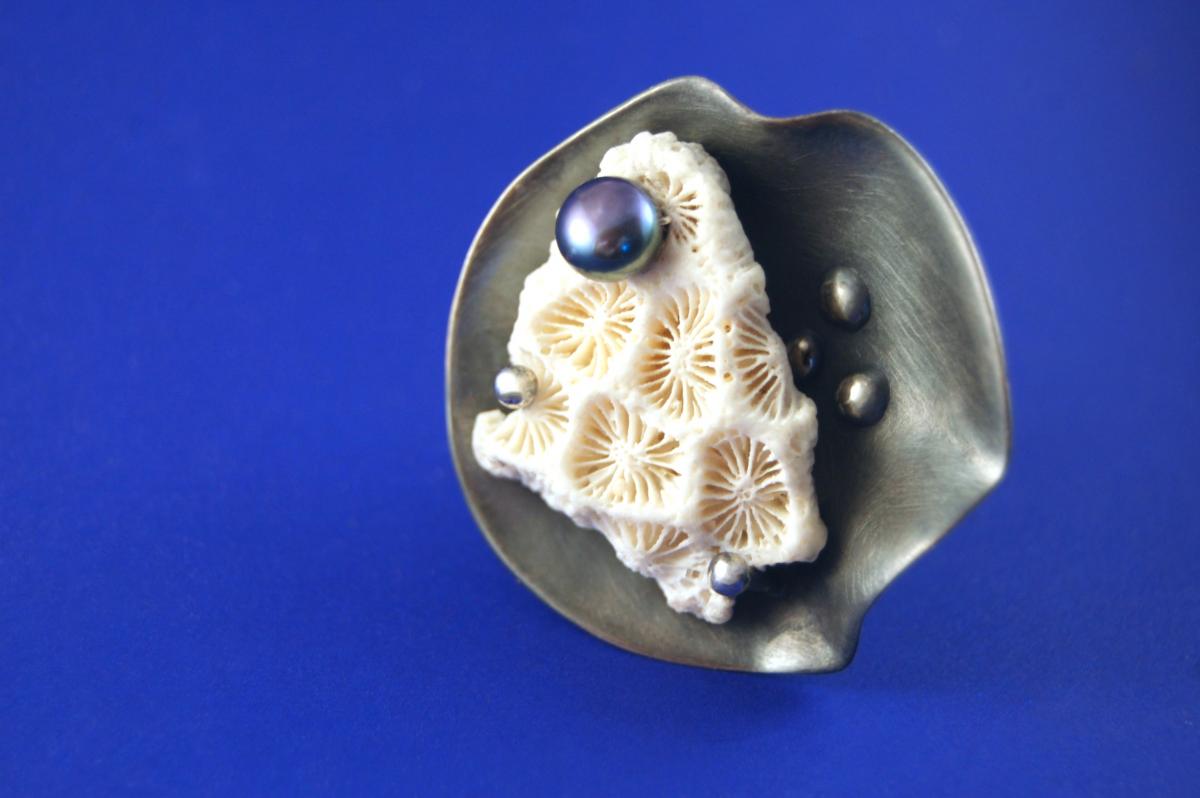 Inspired by the above quote, I have attempted to reinterpret the special relationshipbetween reality and magic in the collection. In the three-piece series, the flowers andstones of the sea meet with silver in the form of a ring, brooch and pendant. In the researchof the relationship between realism and magic, I have focused on adaptation, surface andtransitions. My goal was to bring the abstract and natural form worlds together by matchingcolors, materials and forms.