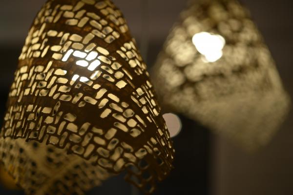 Hozzám az organikus, természetközeli formavilág áll közel. Az anyagtársításban (facellulóz és fémháló) rejlő lehetőségek is ezt az irányt erősítik tovább. A felület rusztikus, áttört mintázatai emlékeztetnek akár egy növényi tok íves, gömbölyű megjelenésére, vagy egy fakéreg felületi bordázottságára.