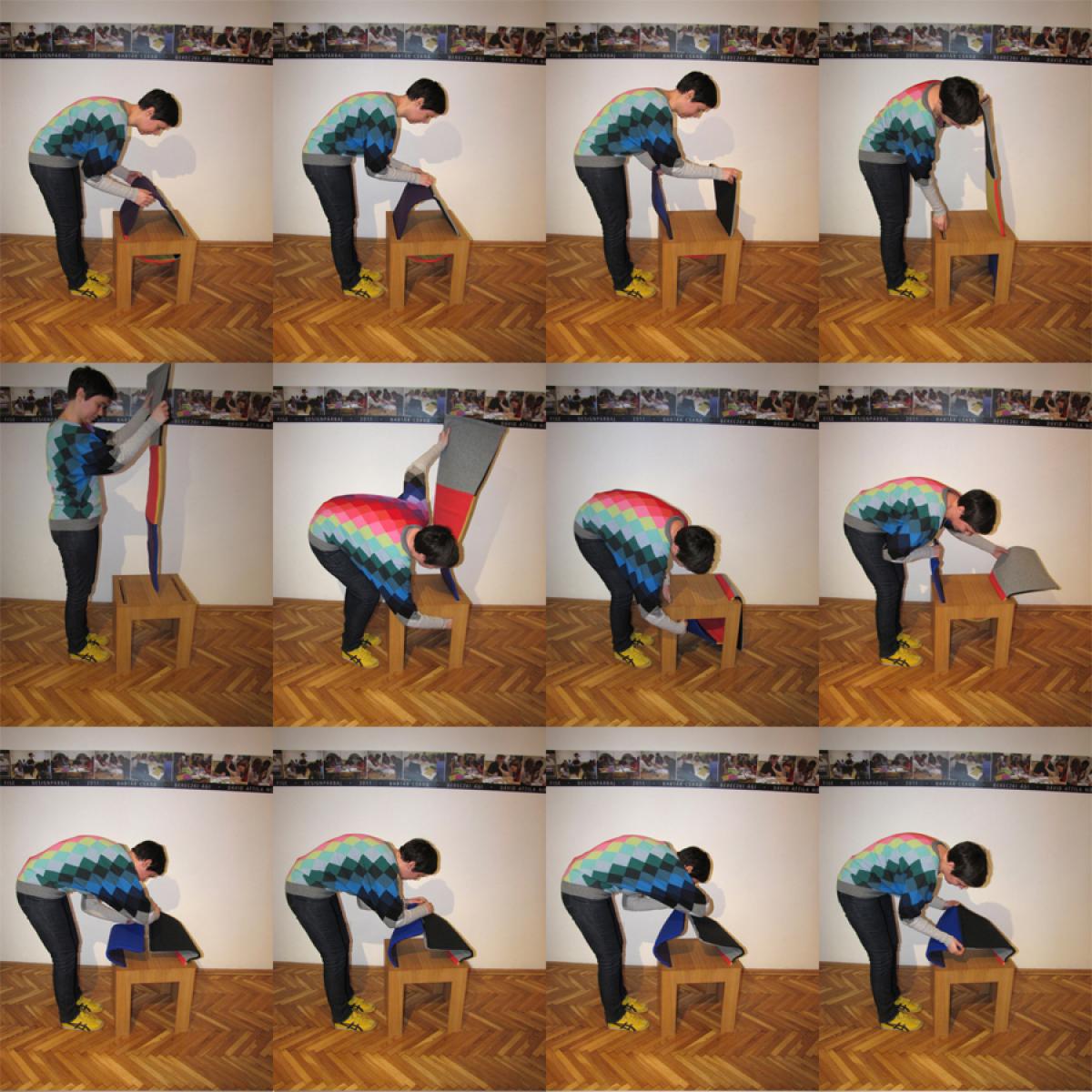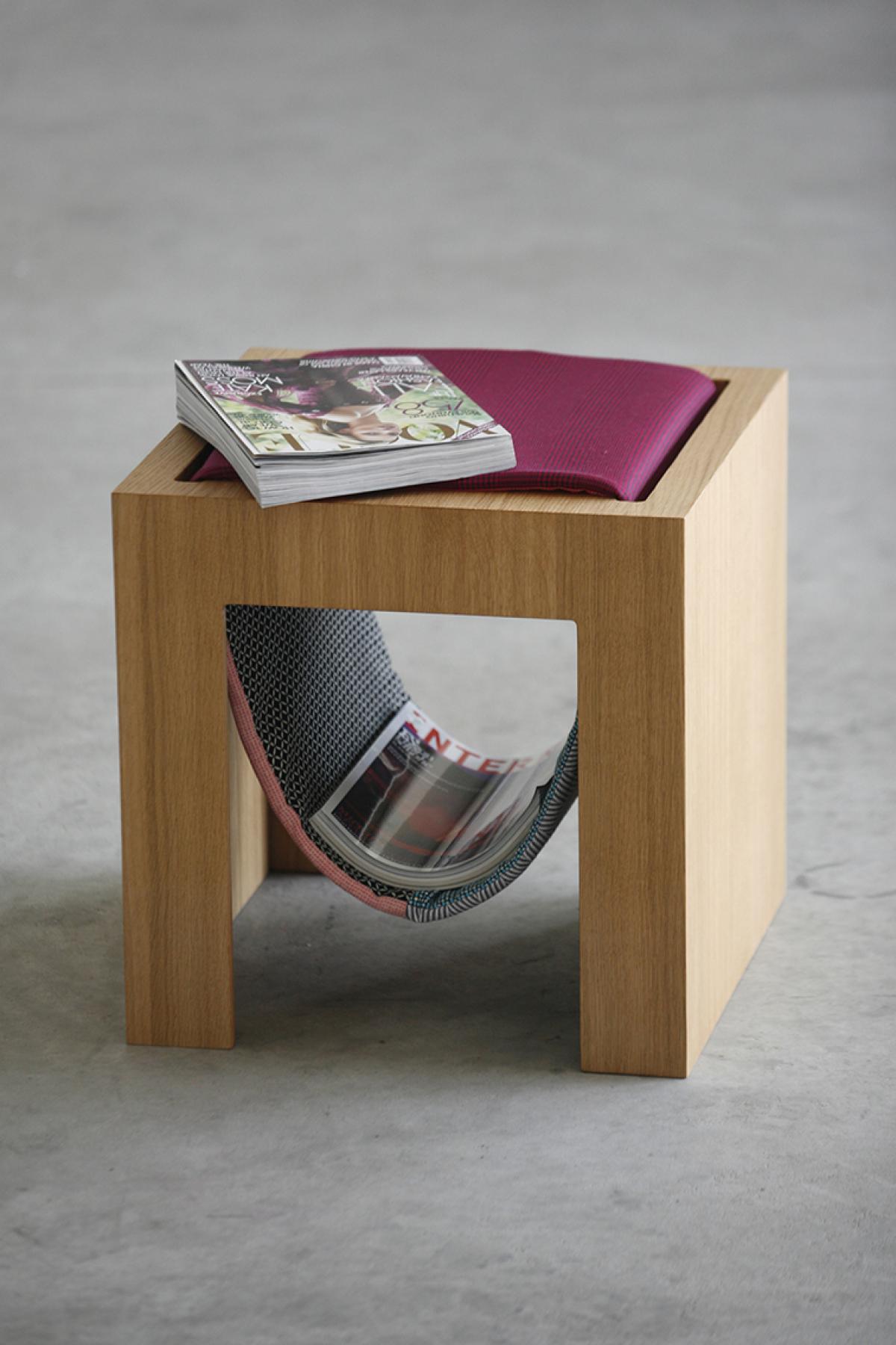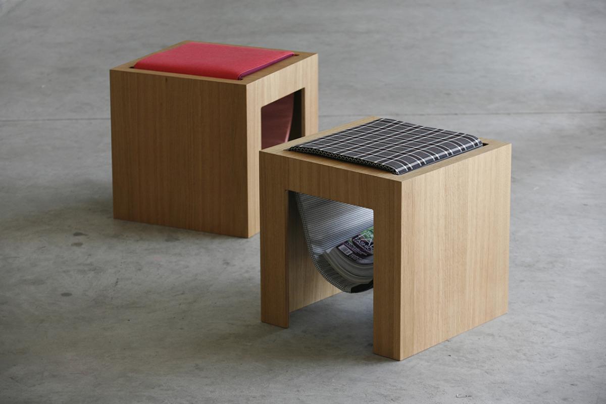 Plywood seat with a rotating carpet offers six different appearances to the bench. The seat custom made to order.