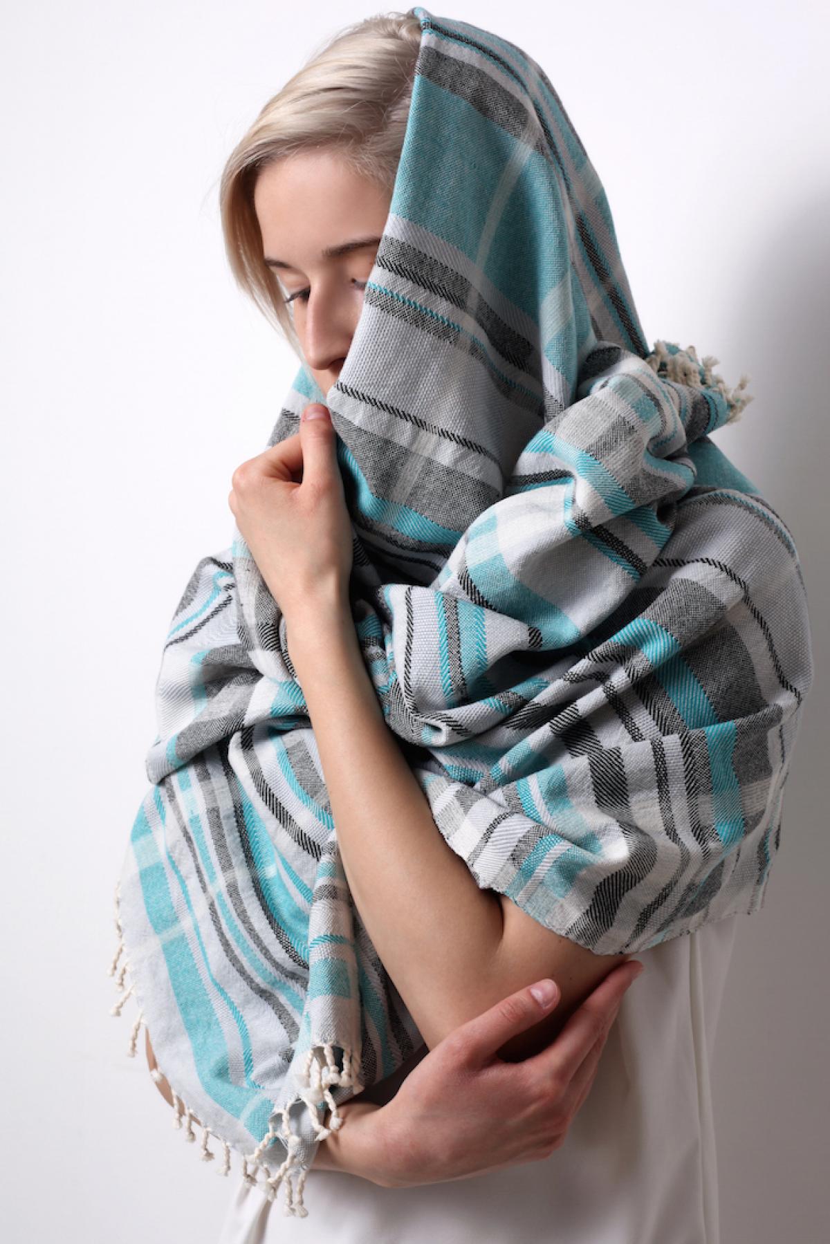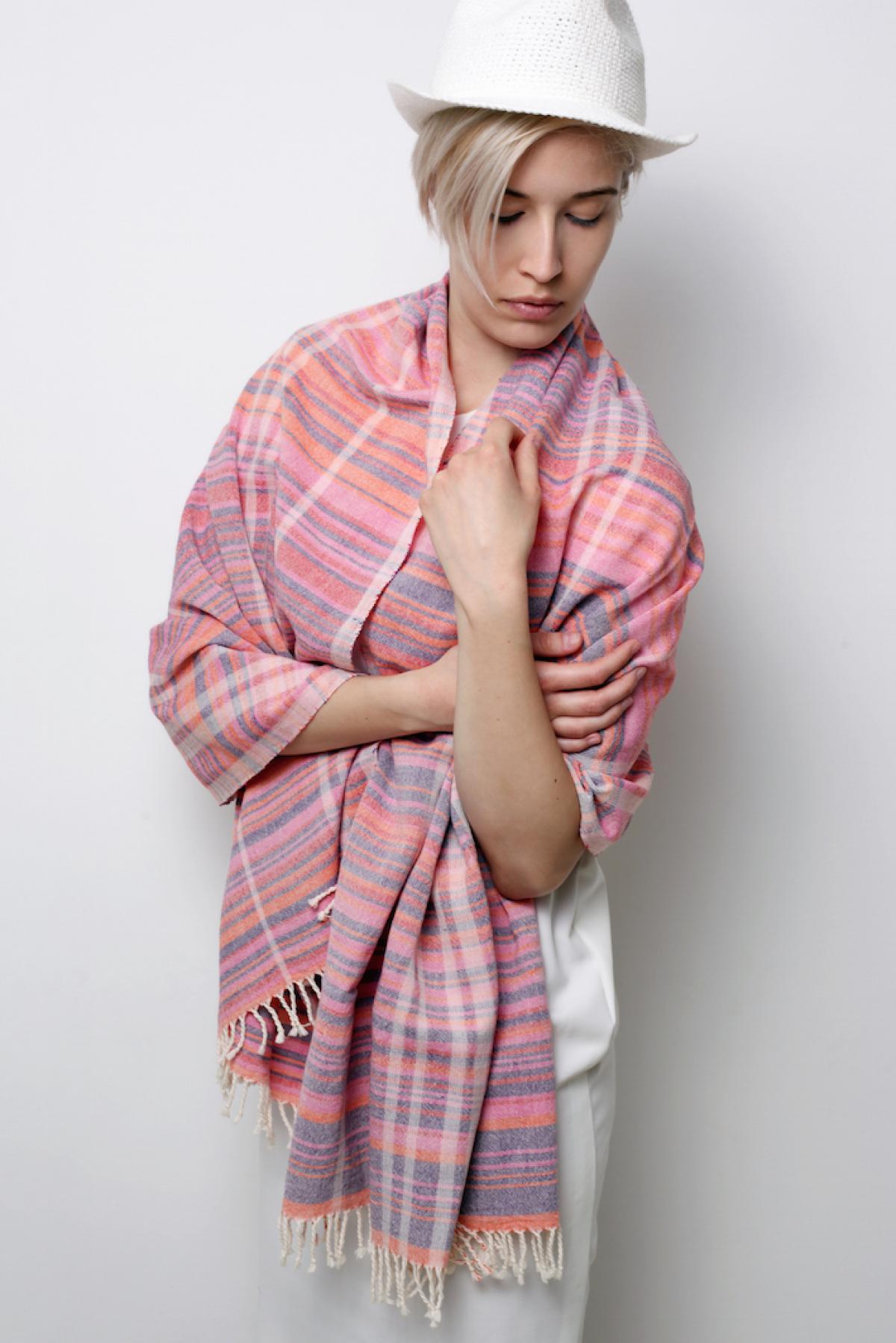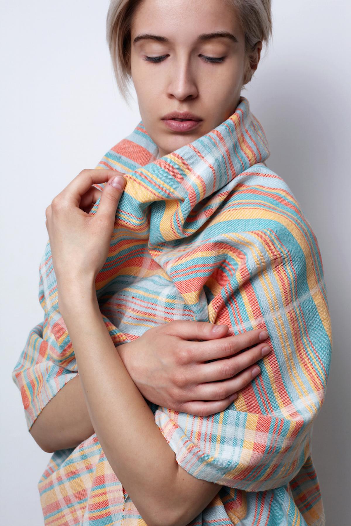 Kézzel szőtt egyedi sálak 100% pamut alapanyagból.