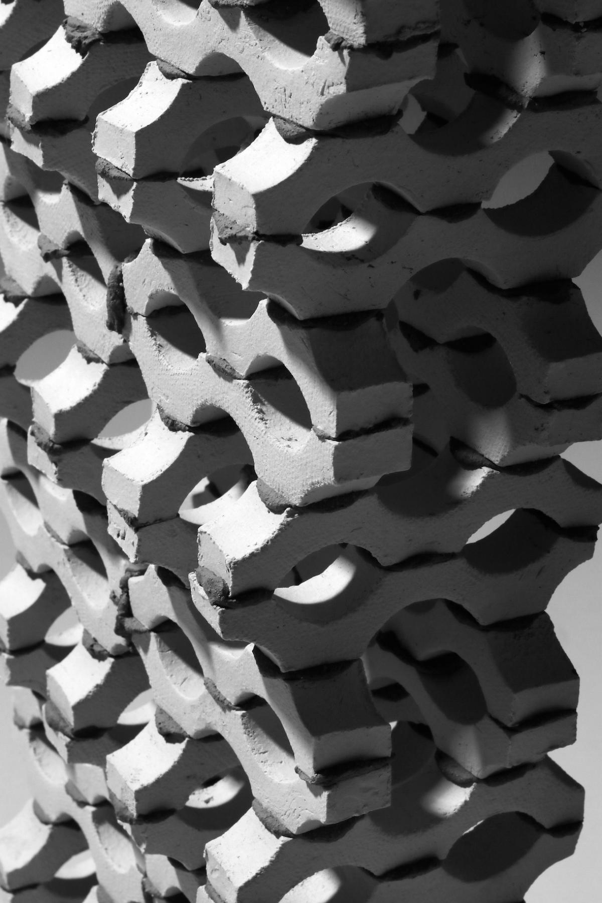 Konstrukcióim az építkezések hangulatát idézik. Ehhez egy olyan alapelemet terveztem, amely a tér minden irányában sorolható. Az elemek egymáson való elforgatása és sorolhatósága számtalan felépítési módot tesz lehetővé. A szerkezetfelépítés módját a színes csomópontok/találkozáspontok teszik egyértelművé és izgalmassá, amelyek emlékeztetnek a hagyományos habarccsal történő téglarakás technikájára.