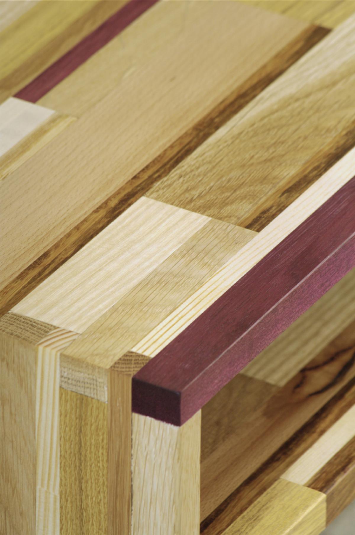 Asztalosműhelyekből, fatelepekről sokféle maradékanyagot (dió, cseresznye, fenyő, akác, tölgy, bükk, kőris, juhar, amarant, bambusz) gyűjtöttem, melyek formájukban és feldolgozottságukban is különböztek. Ez a látványos variancia szolgált a tervezés további szakaszaihoz inspirációként.