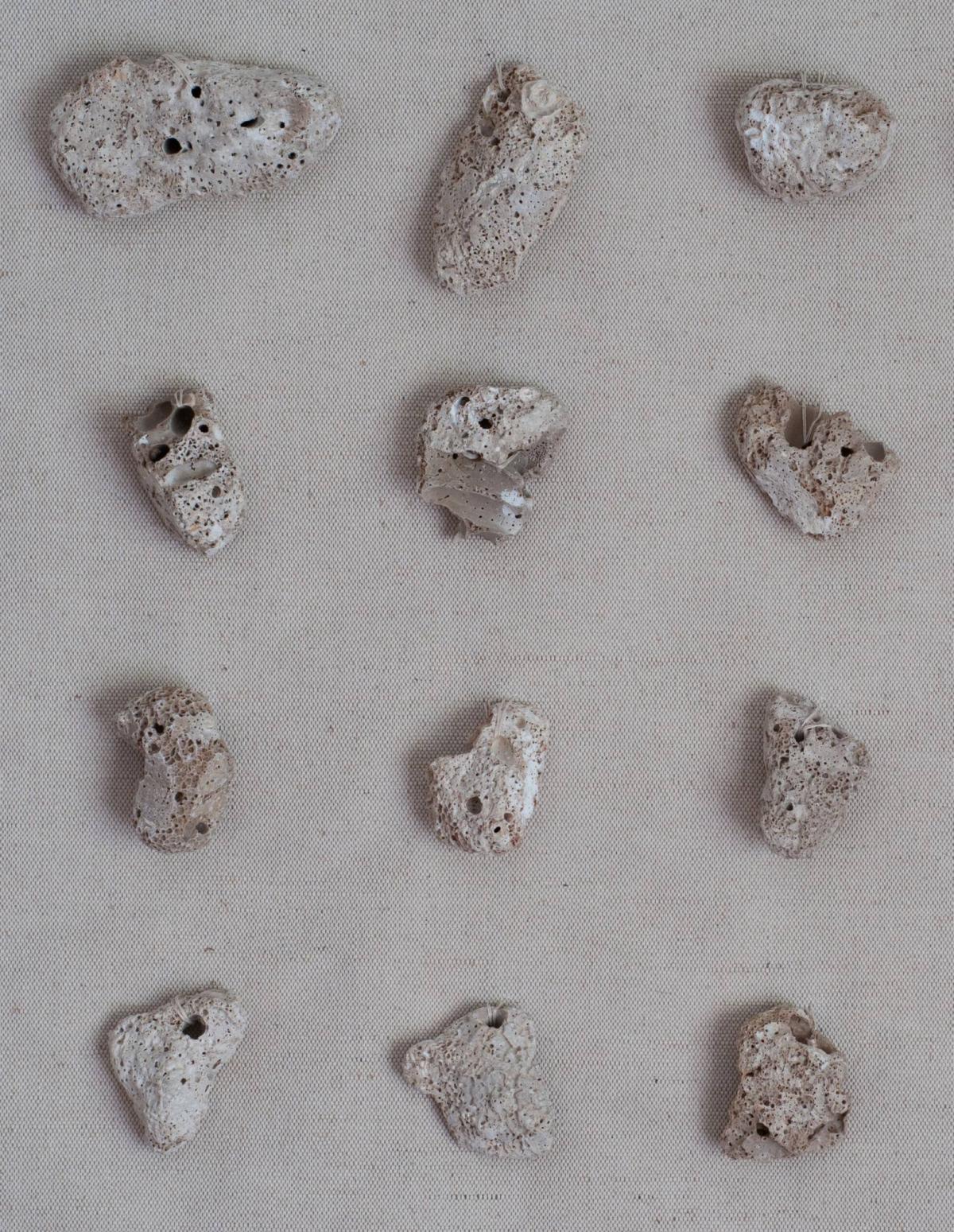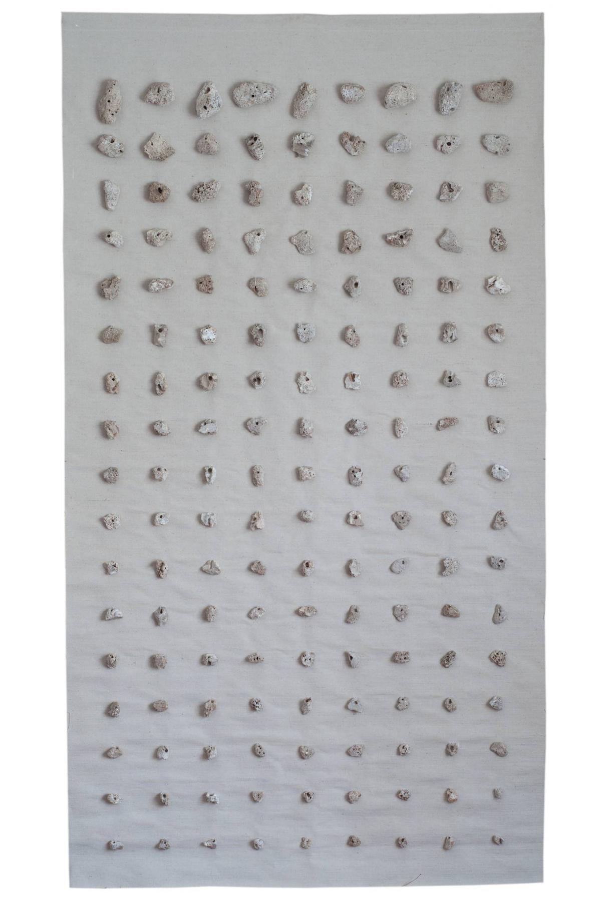 Vászon, kő, kézi varrás