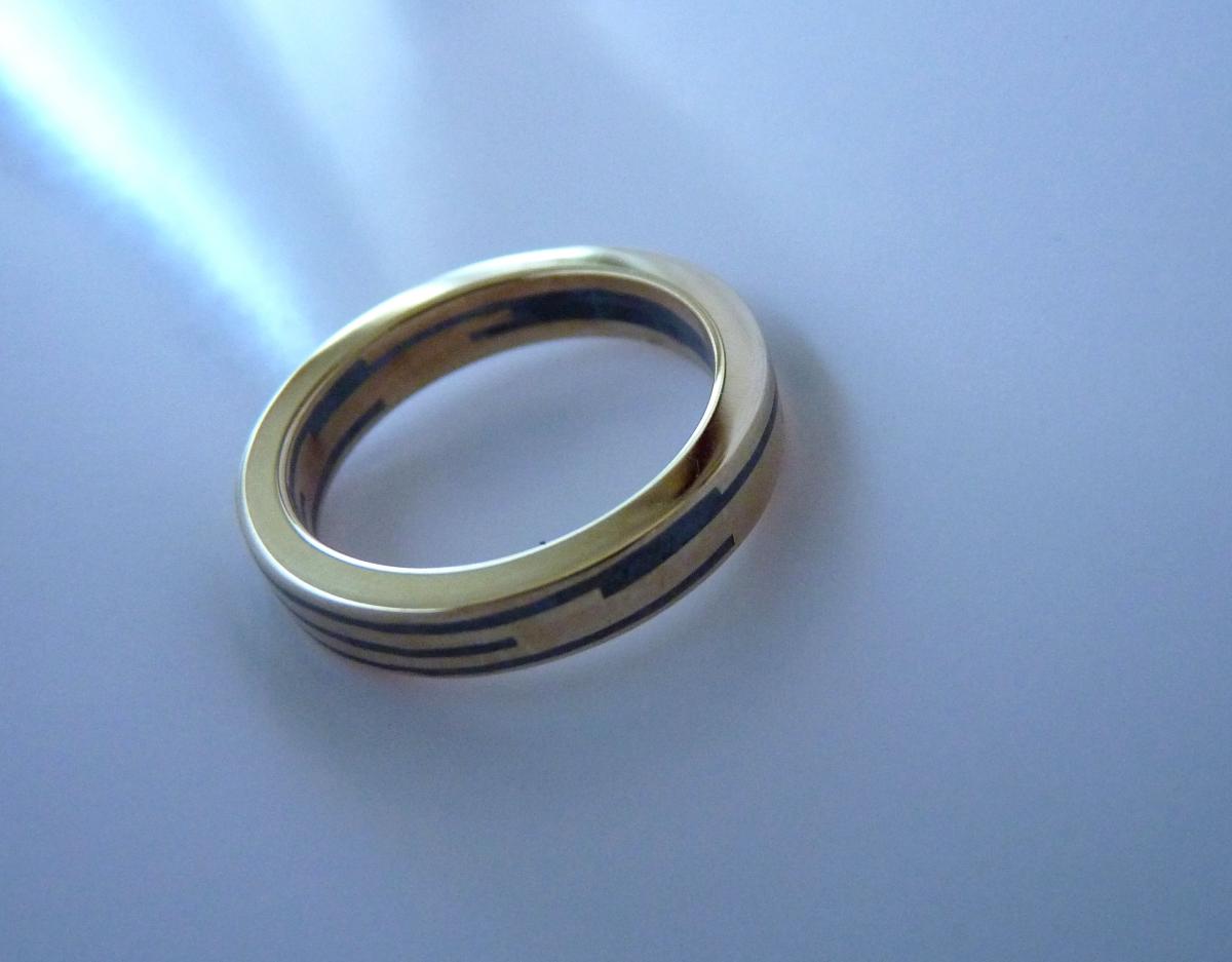 A gyűrűk a Mokume Gane technológiához hasonlóan készültek, ugyanakkor itt egy geometrikus mintázat létrehozása volt a cél. A férfi és a női gyűrű mintázata egymás inverzei.