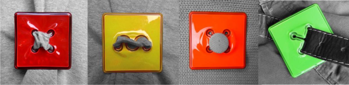 Biztonsági fényvisszaverő kitűzők, amelyek egy gyors mozdulattal rögzíthetők a ruha anyagára vagy annak kiegészítőire.