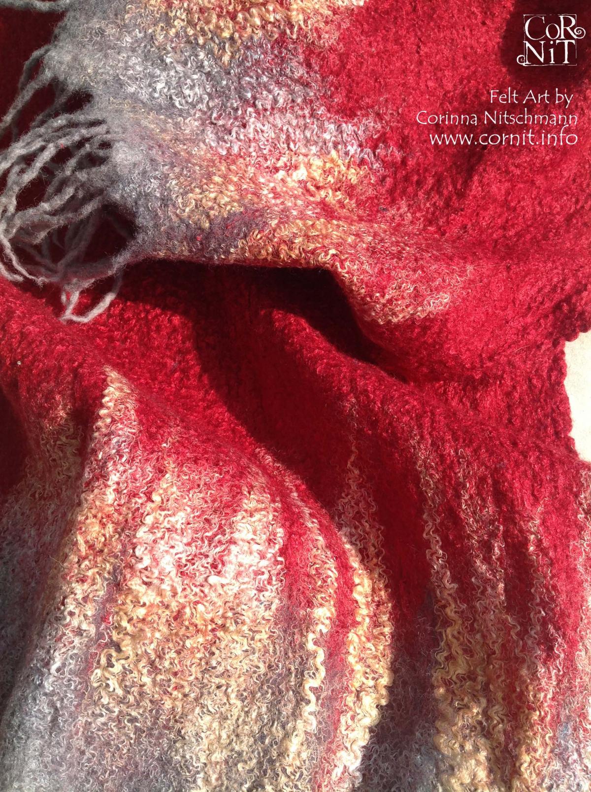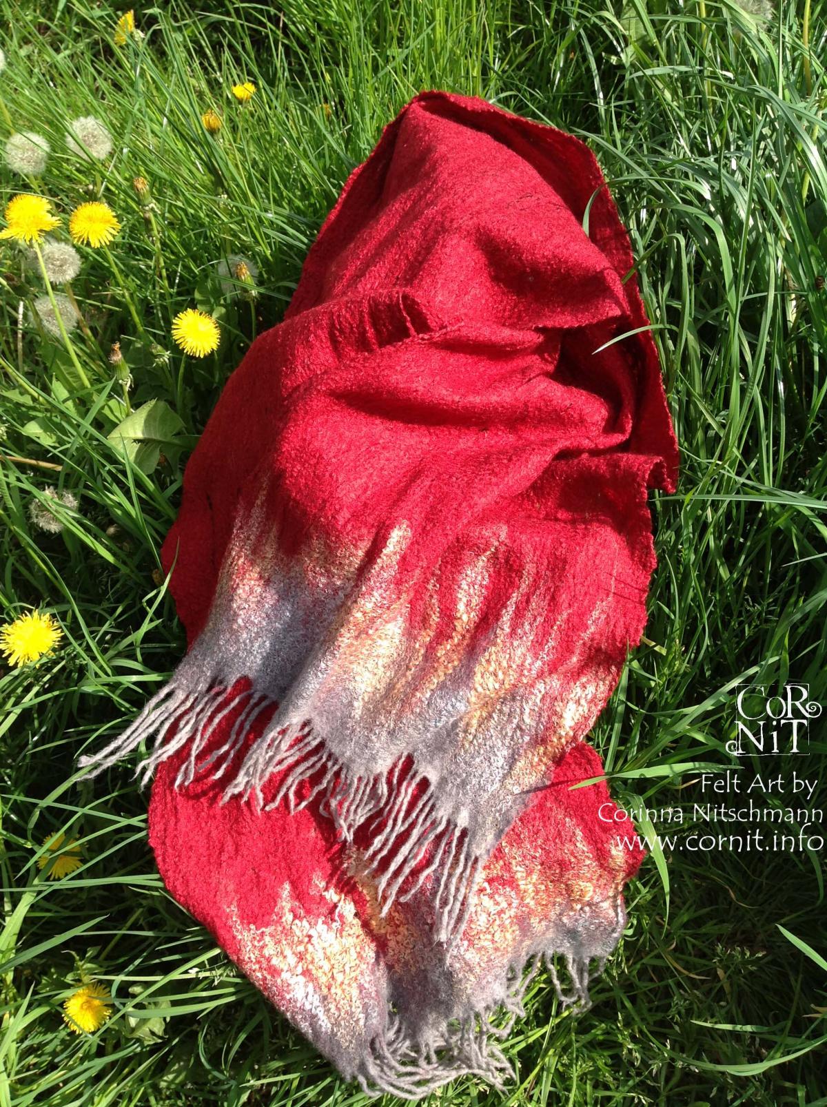 Leheletvékony és puha, mégis tartós nemezsál. Az 50% hernyóselyemnek köszönhetően gyönyörűen fénylik. A végeit is csillogó hernyóselyemszálak díszítik.