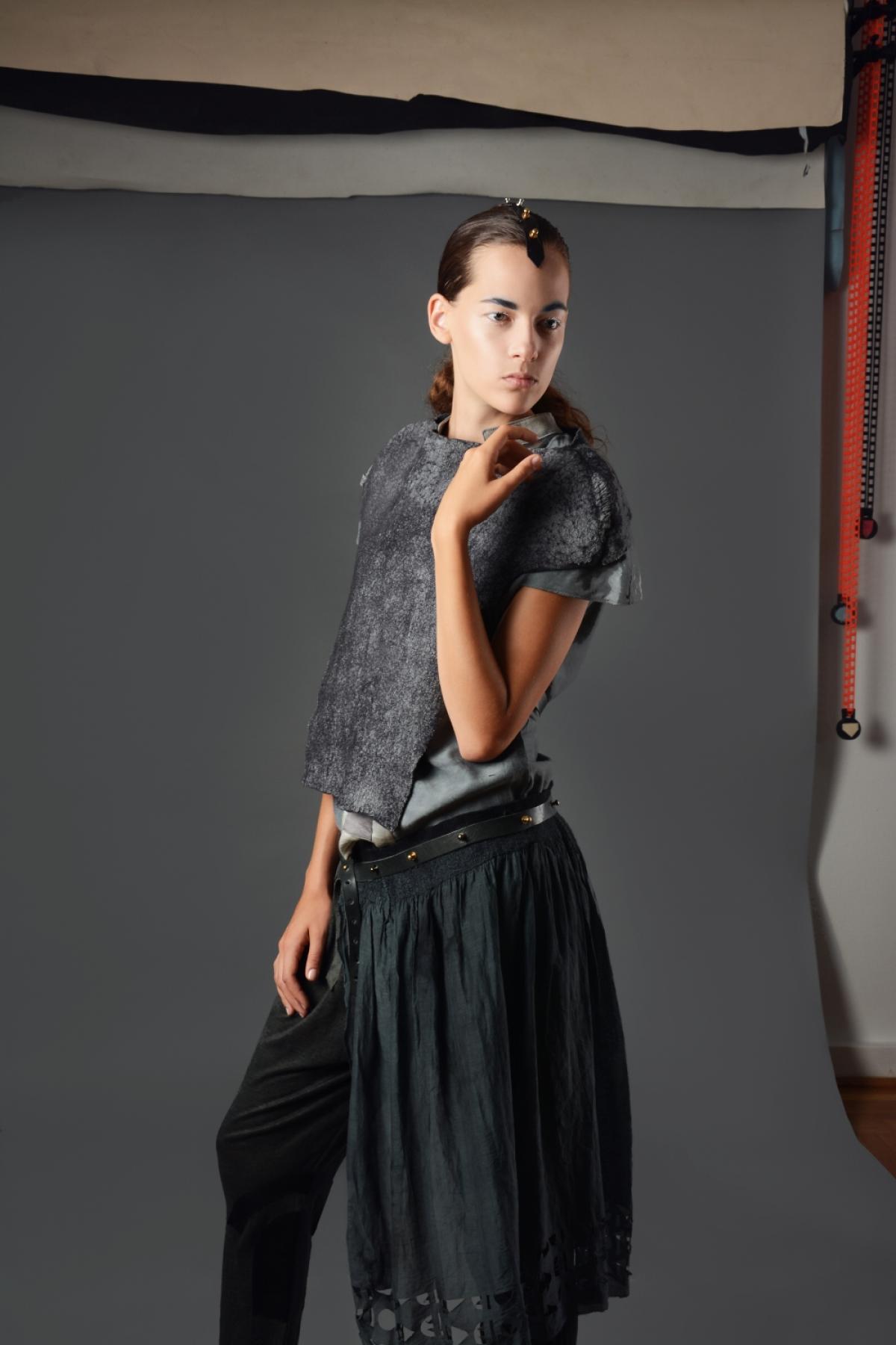 A formák tradicionális és keleti inspirációs vonalat követnek, kényelmes viseletek. A kabátok kézi nemezeléssel készült egyedi darabok, amiken a minta felületek lézervágással készültek. A kiegészítő ékszereken a különféle gyapjú, len, selyem szálak hangsúlyosak.