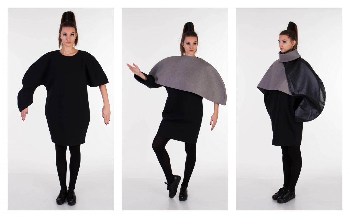 A legkézenfekvőbb testmódosítást – „testplasztikát” – ruházatunk megválasztásával érhetjük el. A tervezés során létrehozott ruha-objektekkel azt vizsgáltam, hogyan változik a megjelenés az öltözék hatására. A Bauhaus szemléletében, testképében találtam meg gondolatmenetem kiindulópontját és inspirációját. Walter Gropius, Breuer Marcell és Marianne Brandt munkásságát kutatva fogalmazódtak meg azok a kulcsszavak, kifejezések, amelyek vezérgondolatomat alkotják: plasztikusság, ergonómia, tömegek és arányok. A látványtervek sík és tér viszonyára reflektálnak – az organikus emberi test és a síklapokból álló ruha kölcsönhatását vizsgálják. A sík objekt a testen válik véglegessé, élővé. A merev anyagkarakterek; filc, műbőr és poliészter-piké szövet, a testtel együtt alkotják a kész formát, a szoborszerű test-plasztikát. A sziluettépítés variálhatósággal, rétegezéssel jön létre. Ugyanennek a darabnak funkcionális áttervezésével a kifejezőerő és a hordhatóság kapcsolata volt fontos számomra. Hogyan változik a sziluett és hogyan módosul a plasztikai forma hordható, utcai viseletként. A ruha-objektek és az oversize utcai modell egyaránt az alapvető plasztikai kifejezőeszközök és az emberi test kapcsolatáról szólnak a textil, az öltözék nyelvén.