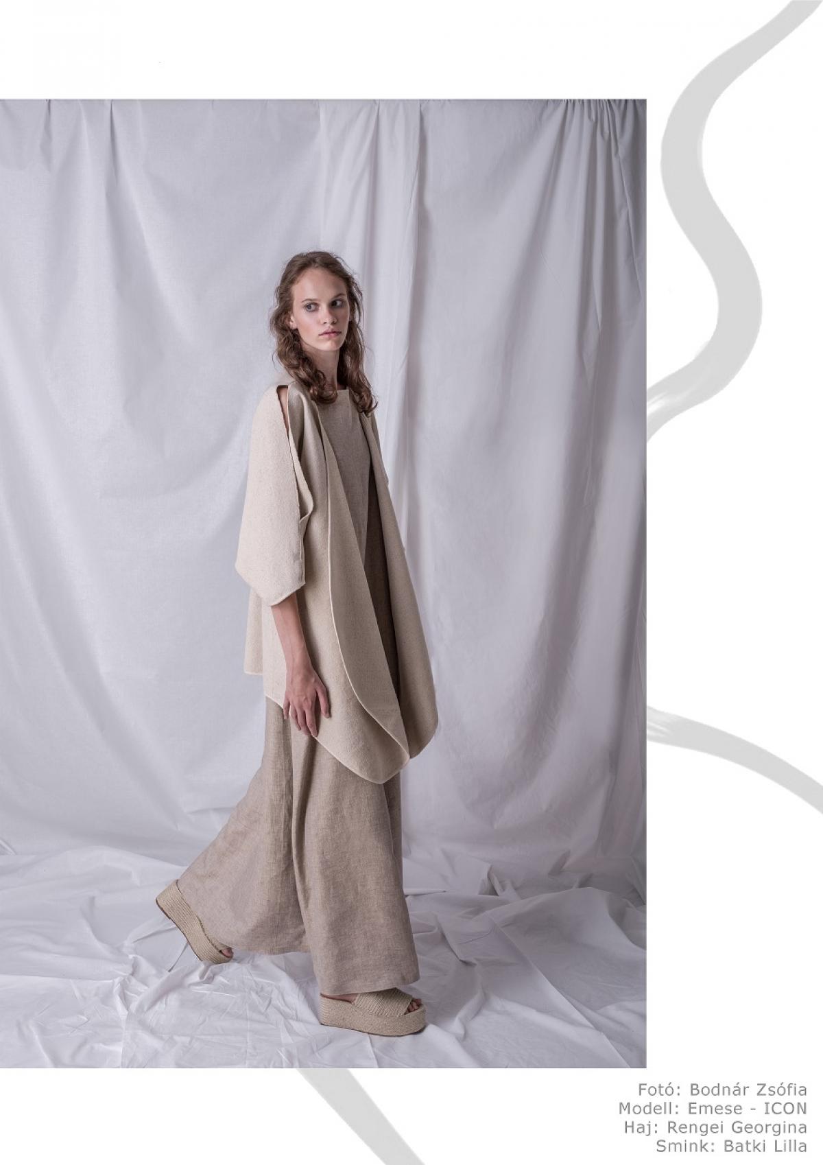 Kollekcióm kiindulása a finn organikus designhoz és Alvar Aalto munkásságához köthető. Célom tartós és időtálló darabok megalkotása, illetve az Aalto-i hagyományok megismertetése öltözeteimen keresztül. Fontos szempont a szabad mozgás, a komfort érzése és a kombinálhatóság. Hangsúlyos anyagok: len, pamut. A formaalakítás, és az anyaghasználat utal több ruhadarab összekapcsolódására. Könnyed, hétköznapi viseleteket hoztam létre. Természetes városi lét kifejezése jelenik meg öltözeteimben.