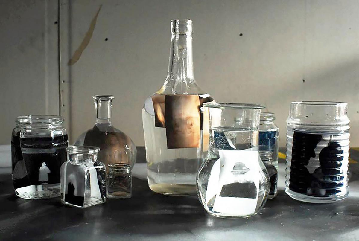 A Fotóbefőttek installáció szintén egy kivonata lett számomra a fotónak, az emlékezésnek. A vízben áztatott képek öt nap után feloldódnak és leáznak a fotópapírról.