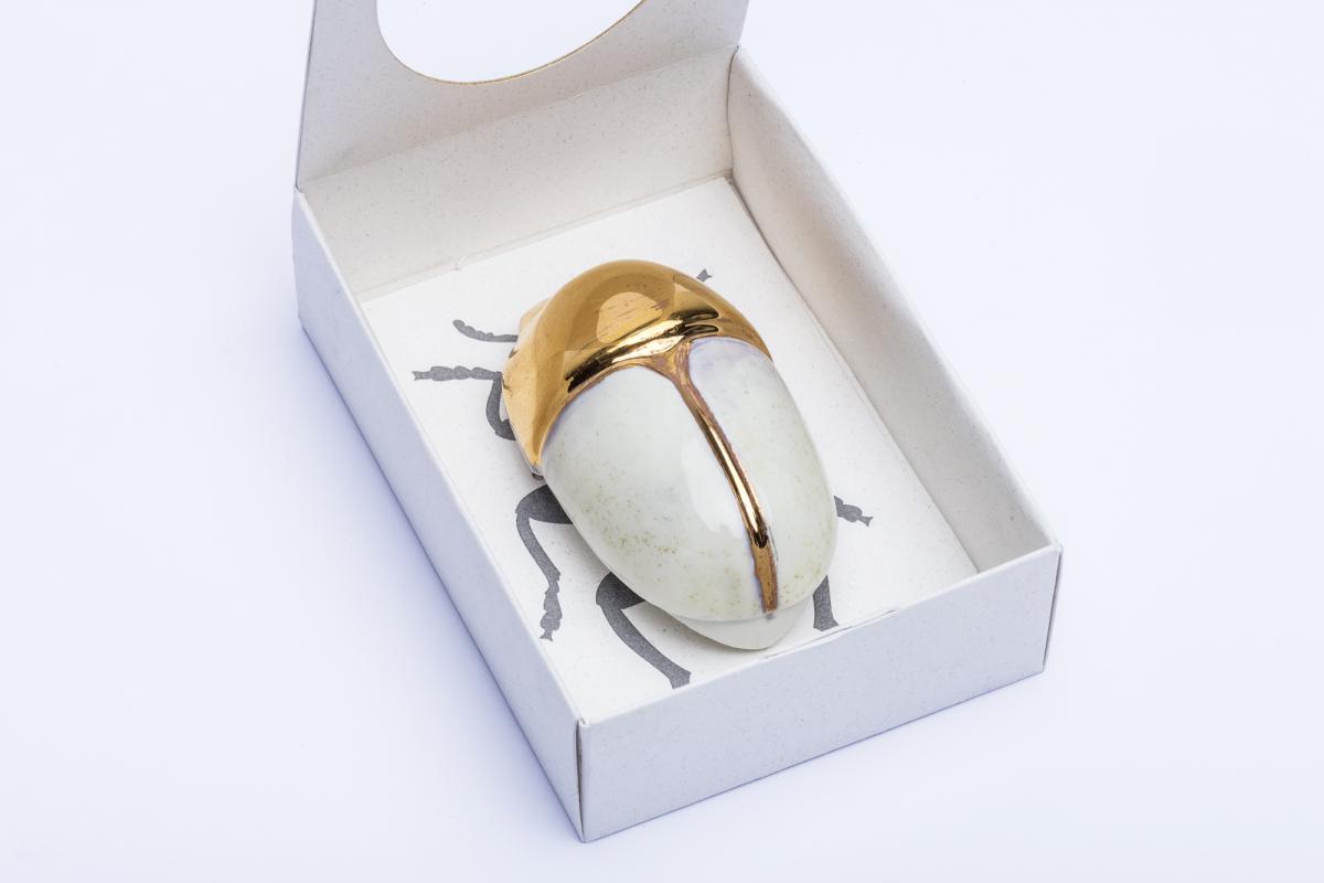 /A collection from experiment with glazes and lusters which is reflect to the beetles iridescent chitin. Used as a Christmas tree ornament, which inspiration came from our tree decoration habits.