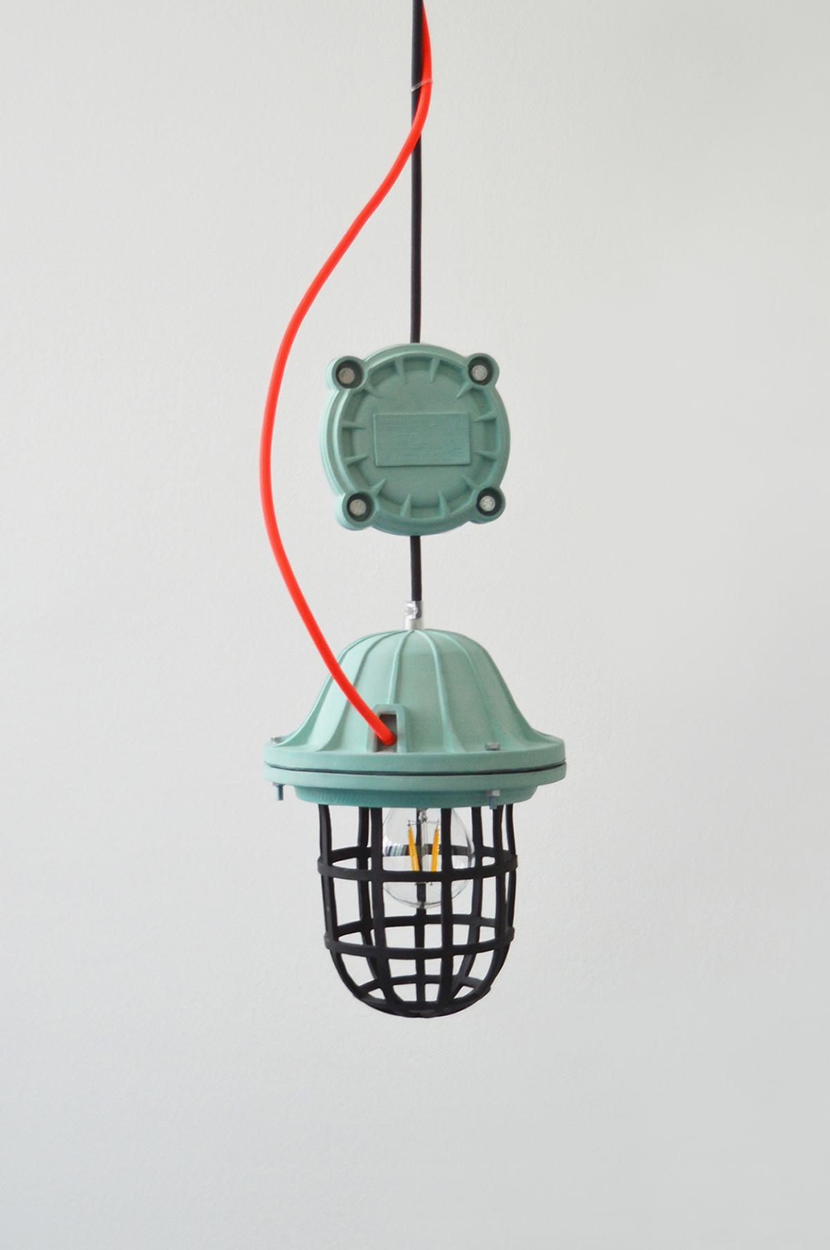 / The inspiration of the lamp came from a 20th century gas and explosion proof safety industrial pendants. This is a re-interpretion of now useless factory lamps. A reflection of how changes a functional appliance nowadays enteriours to a decoration.