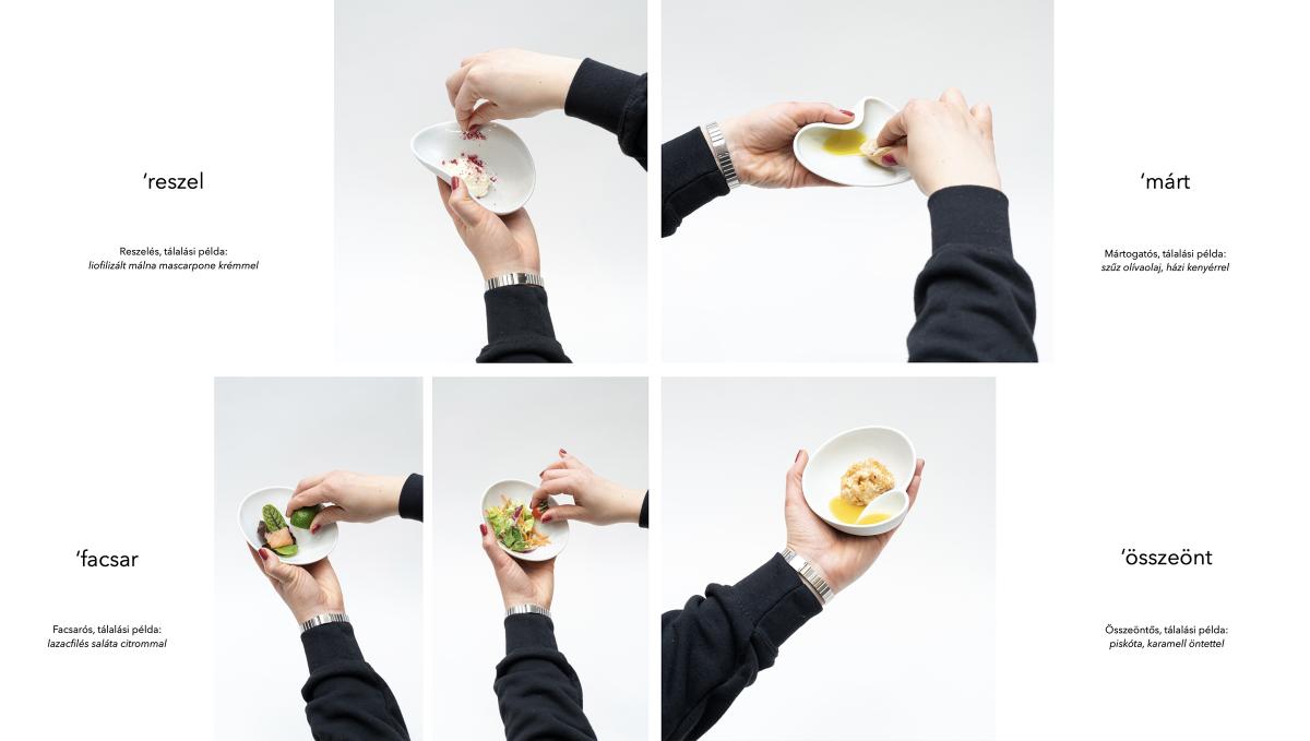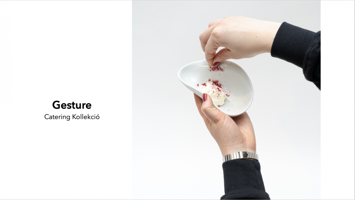 hangulatát. A Gesture tálaló tárgyak formai karakterjegyeit az étel elkészítésének gesztusai határozzák meg. Az egyes darabok segítenek az olyan ételek felszolgálásában ahol az étel különleges tálalást igényel, például az előre elkészített falatok és szószok így egy tányéron tudnak megjelenni, anélkül hogy érintkeznének egymással.