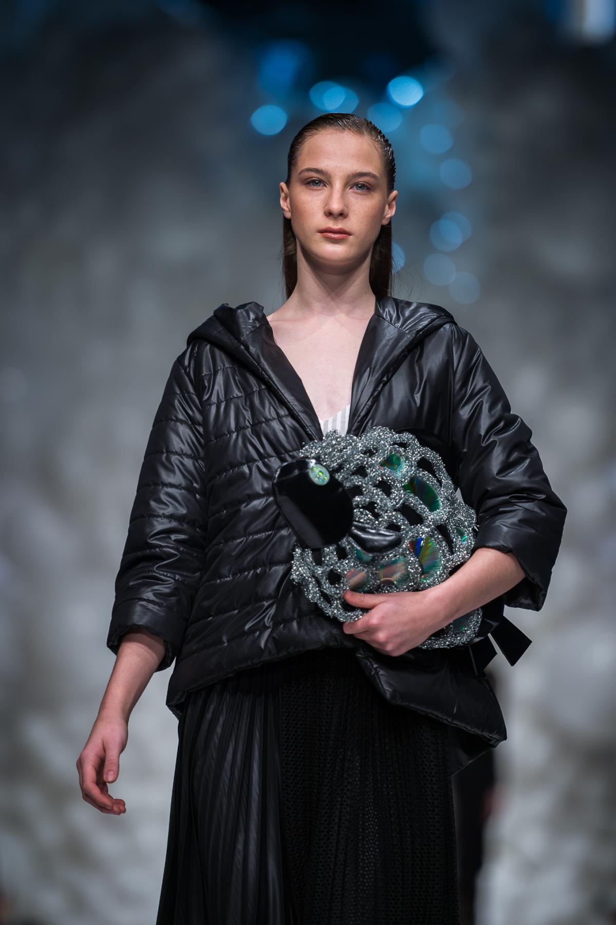 A fantázia divatkiegészítők készítése a saját álom- élményeimből, asszociációim- ból. Egy flexibilis origami zá- ródás és hétköznapi formák párosításával értem el szürreális látványt. A „táskát” különböző tapintású anyagokkal párosí- tottam, így belenyúlva a tárgy belsejébe érzéseket vált ki.