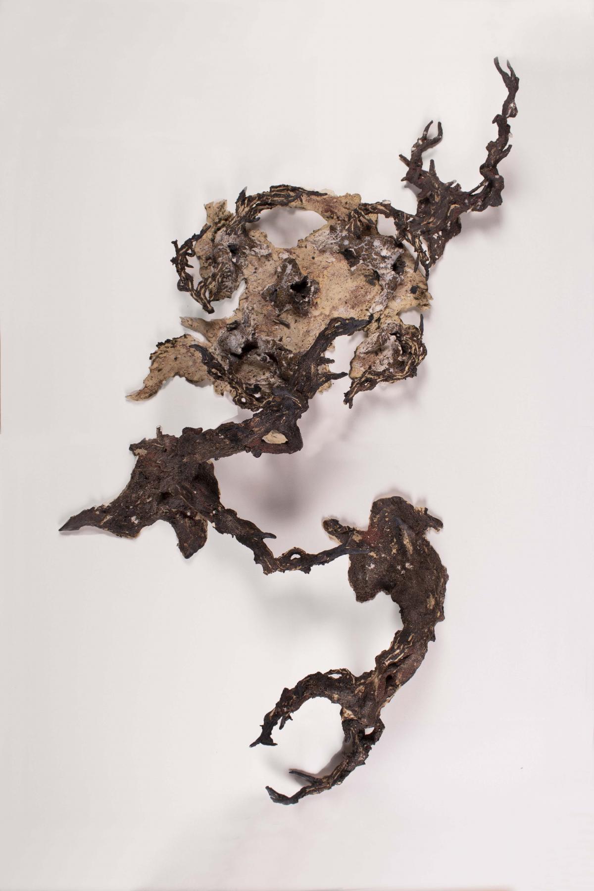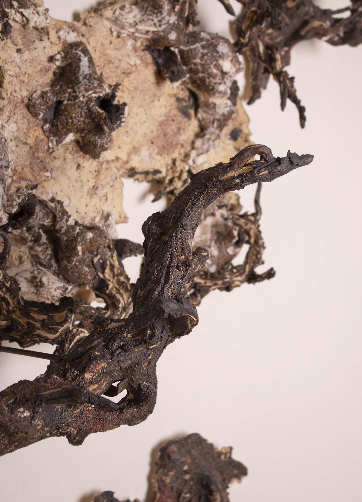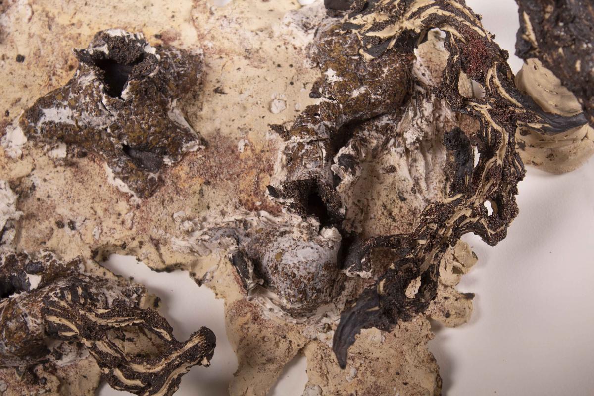 Kézzel épített fali plasztika újrahasznosított kerámia, öntőmassza, kreaton, pécsváradi homok oxidációs égetés, 1200C