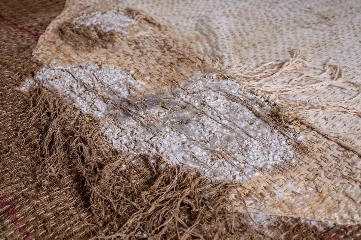 Fércmű című diplomamunkámban az időt, mint a generációk tudásának téri lenyomatát szeretném megjeleníteni a micélium élő szövete segítségével. A micélium által összestoppolt szövetrétegek szimbolizálják a kézművesség generációkon átívelő jelenlétét. Különböző karakterű anyagokat kapcsolok össze szervesen fércek és szállebegések segítségével. A szövetek eltérő karaktere a kollektív kézműves jelenlét egy-egy darabjaként jelenik meg.