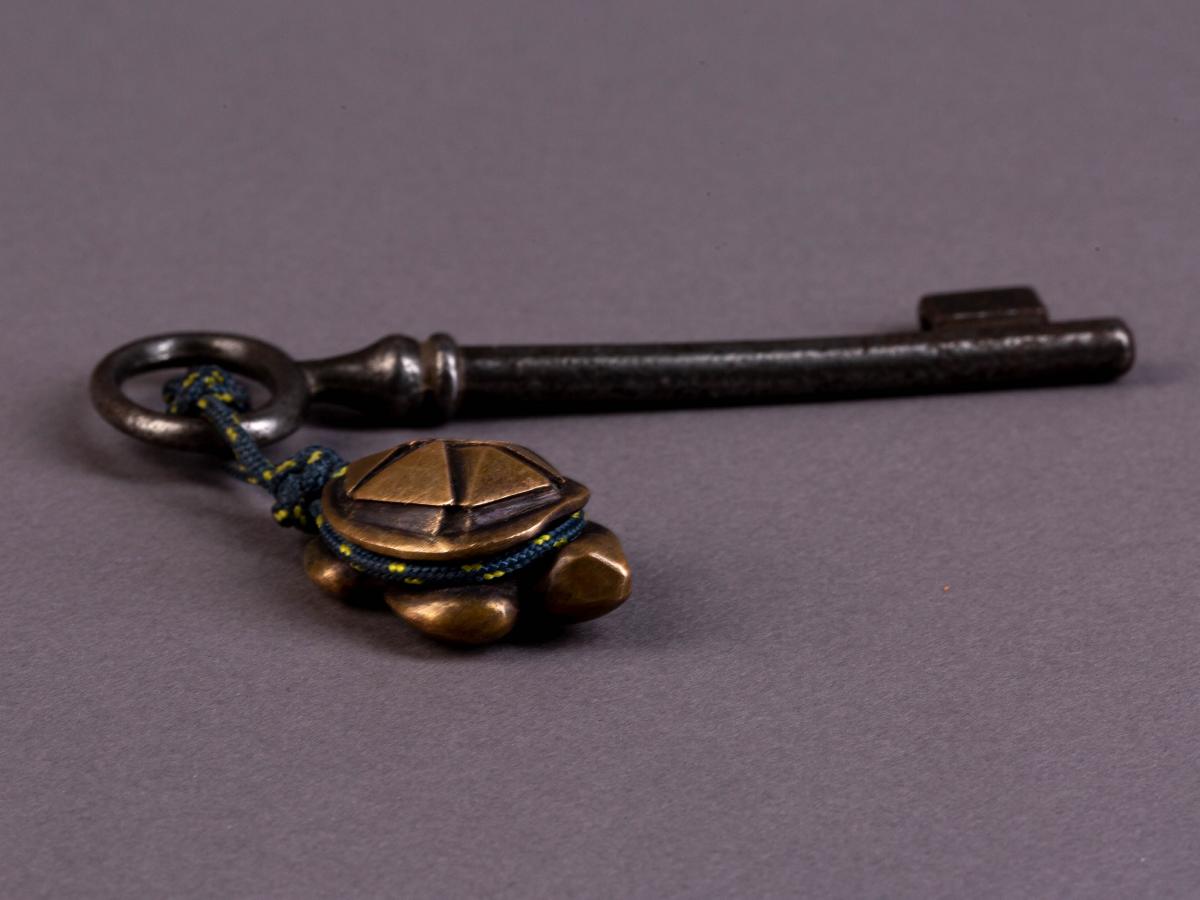 A tengeri teknős egy különleges élőlény. Sokat utazik, de bárhol is tartózkodik, a páncélja védelmet nyújt számára. Akár csak egy ház. Amikor ezt a tárgyat terveztem, sokat költöztem. Ott éreztem magam otthon, ahol éppen laktam. Ezért sok házhoz kötődöm. Ezt jelenítettem meg, szimbólikusan a figura páncélján lévő házikókkal.