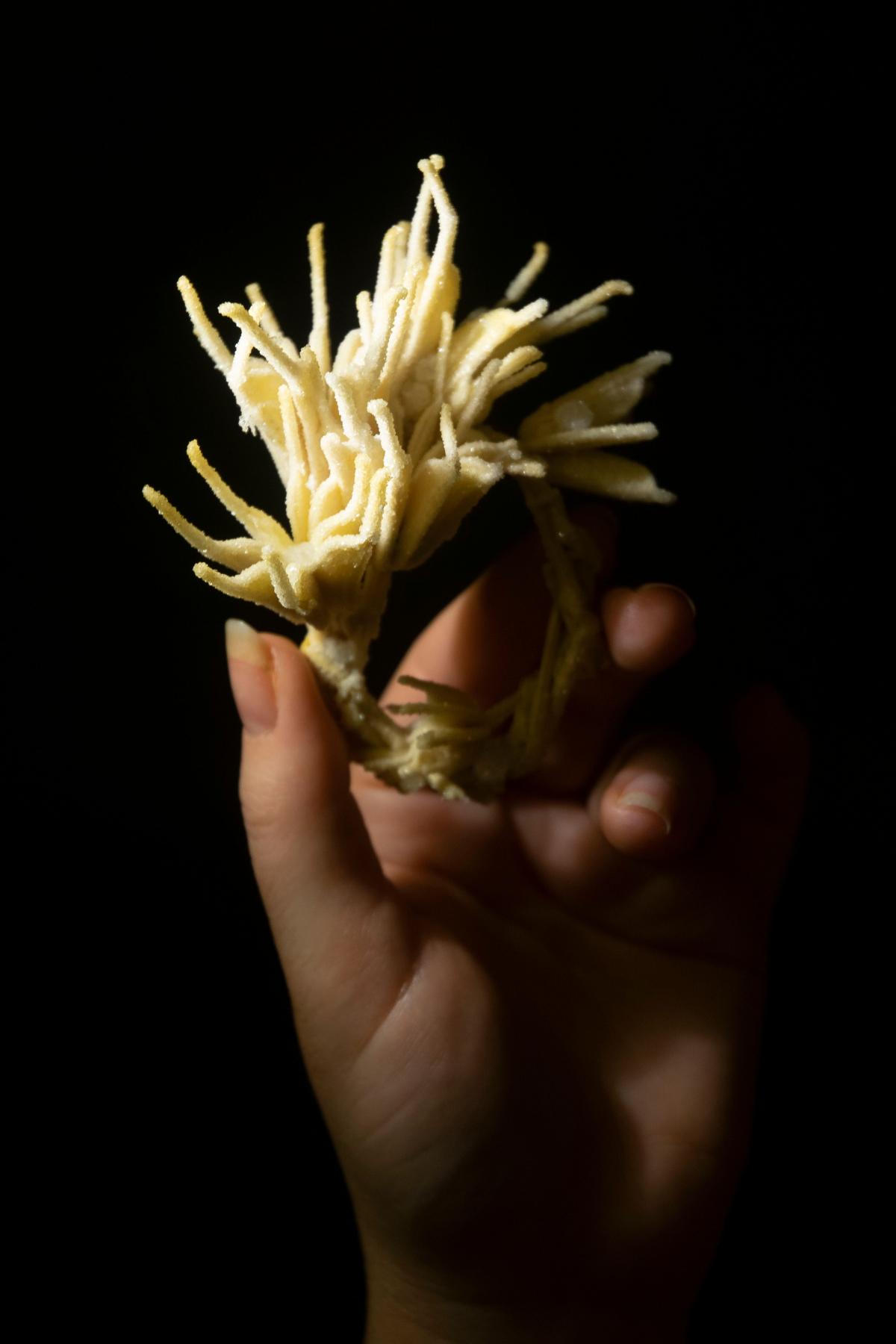 A diplomamunkához különböző kristályosító oldatokkal és szárított, illetve tartósított virágokkal folytattam kísérleteket, hogy feltárjam ezeknek az anyagoknak a határait és lehetőségeit a jövőbeni alkotásaimhoz.